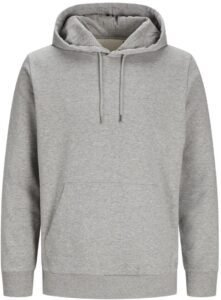 Jopica ima klasičen kroj, dvoplastno kapuco s podlogo in vrvico z kovinskimi zaključki. Na notranji strani ovratnika je všit polmesečasti detajl, ki povečuje udobje pri nošenju. Robovi na rokavih in spodnjem delu so zaključeni z rebrastim patentom, kar omogoča boljše prileganje. Spredaj je klasičen kenguru žep. Notranjost jopice je rahlo kosmatena (angl. brushed fleece), kar prispeva k mehkobi in toploti.