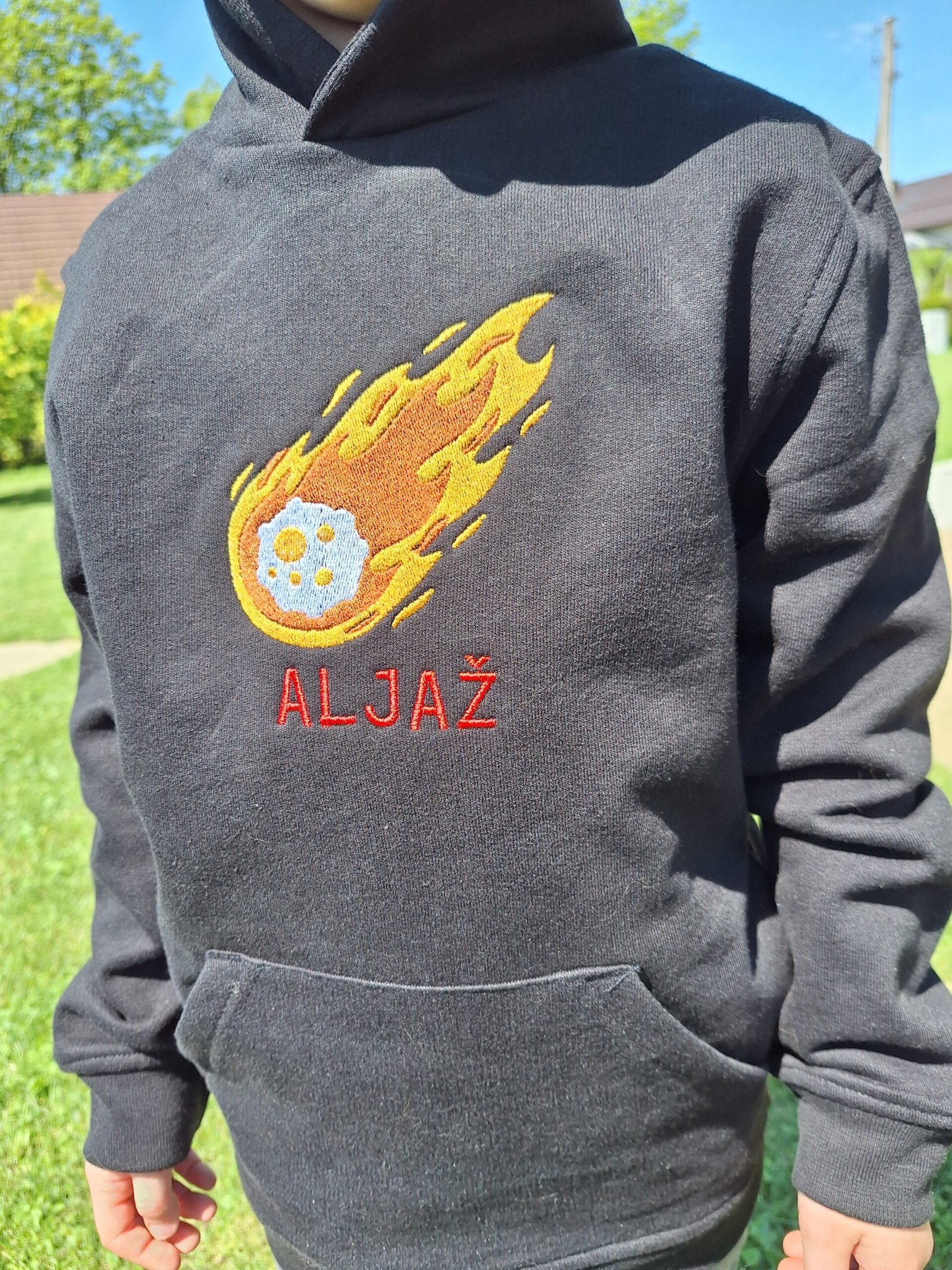 Otroški pulover s kapuco s personaliziranim motivom – udoben, topel in unikaten kos za male pustolovce.